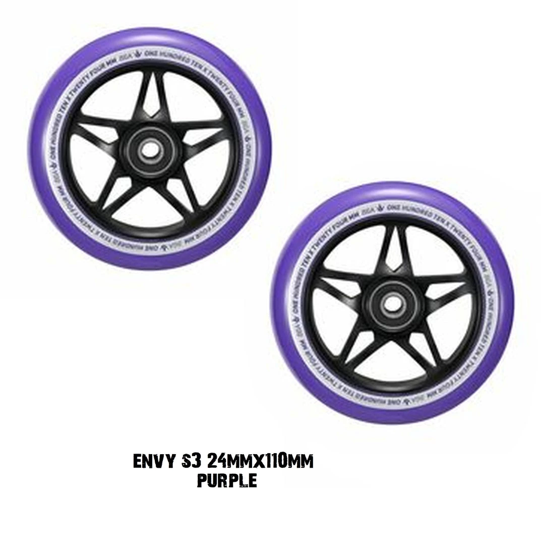 All the scooter wheel goodness you expect from Envy Scooters…now in 110mm, black/purple combo.