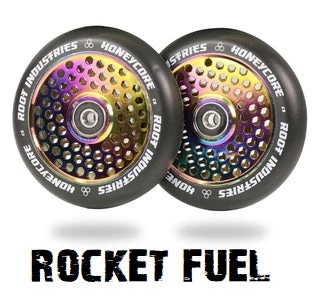 Root Industries Honeycore pro scooter wheels! These are the rocket fuel on black 110mm.