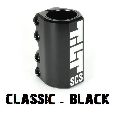 Tilt SCS scooter clamps are constructed to improve clamp technology, this simple design is trusted and reliable. Custom bolts with a 6mm hex key drive and 50% larger threads provide more clamping power and help keep the bars in place and compression tight. The removable shim allows use with both size handlebars. Every clamp bolt from Tilt comes with pre-applied anti-seize to prevent the bolts from seizing to the clamp.