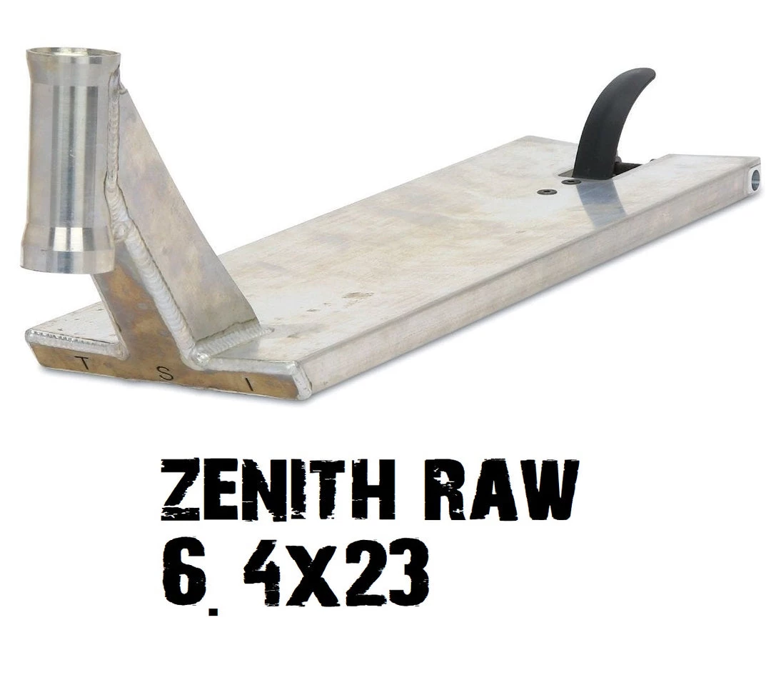 100% Pure TSI, this is the new Zenith. Handbuilt in Portland, Oregon by some of the most experienced scooter creators in the industry. This deck may look like others on the market, but looks can be deceiving. We have combined all the best innovations of our best selling decks into one incredible scooter. featuring the low profile of the Satellite, with the most favored features of the Boxcutter; the flat bottom & noseplate for maximum grind stability. Coming in at 6.4 inches wide & 23 inches long, this deck is our roomiest to date. Made from internally fluted 6061 aircraft grade aluminum, extruded right here in town. finished off with even more streamlined deckends this time around, this is the Piece de Resistånce of TSI. on steroids.